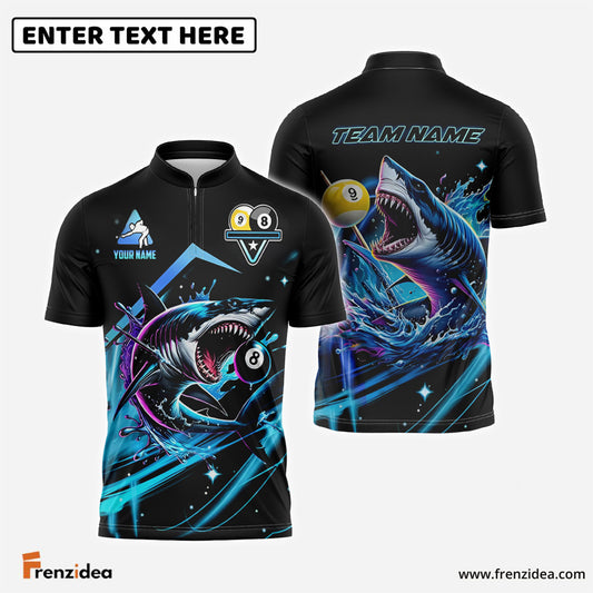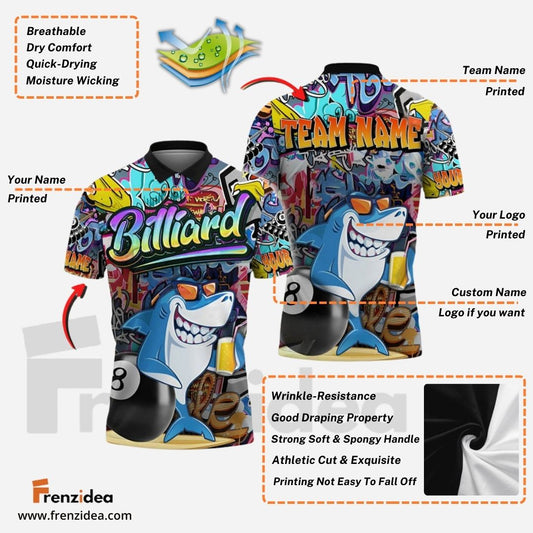 Frenzidea Billiards 8 Style Shark Personalized Name, Team Name Shirt