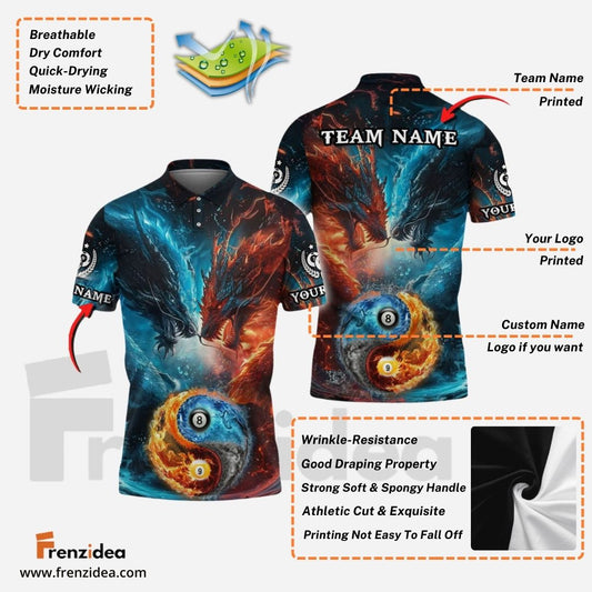 Frenzidea Billiards Ball 8 & 9 Water Dragon VS Fire Dragon Personalized Shirt
