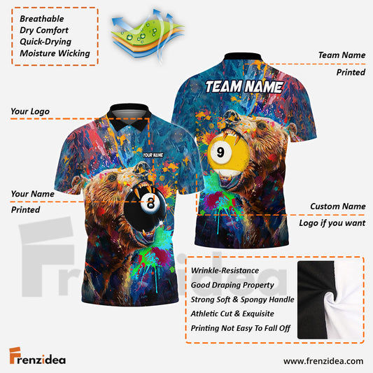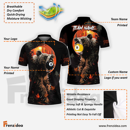 Frenzidea Billiards Ball 8 & Ball 9 Bear Forest Personalized Name, Team Name Unisex Shirt (4 Colors)