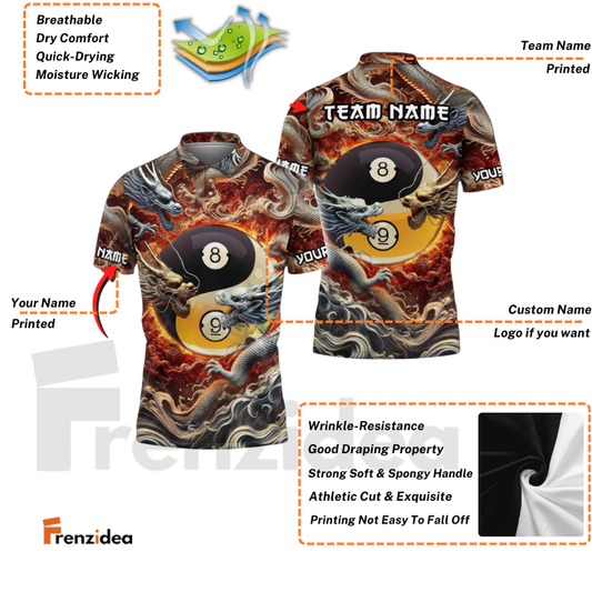 Frenzidea Billiards Ball 8 & 9 Imperial Dragon Customized Name, Team Name 3D Shirt