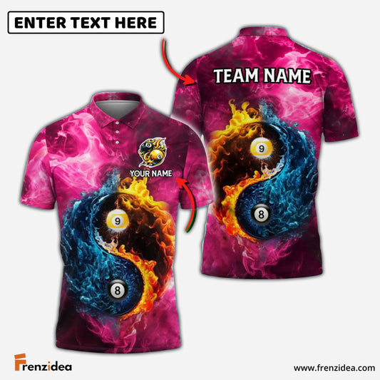 Frenzidea Billiards Ball 8 & 9 Yin-Yang Elements Personalized Name, Team Name Unisex Shirt (4 Colors)