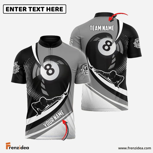 Frenzidea Billiards Ball 8 Player Gray Personalized Name, Team Name 3D Shirt