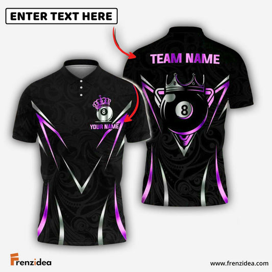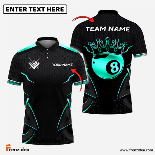 Frenzidea Billiards Ball 8 King Crown Design Personalized Name, Team Name Shirt (6 Colors)