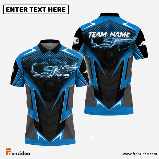 Frenzidea Billiards Ball 8 Lightning Flame Sport Personalized Name, Team Name Unisex Shirt ( 4 Colors )