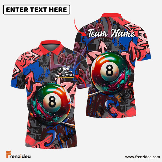 Frenzidea Billiards Ball 8 Graffiti Street Personalized Name, Team Name Unisex Shirt ( 4 Colors )