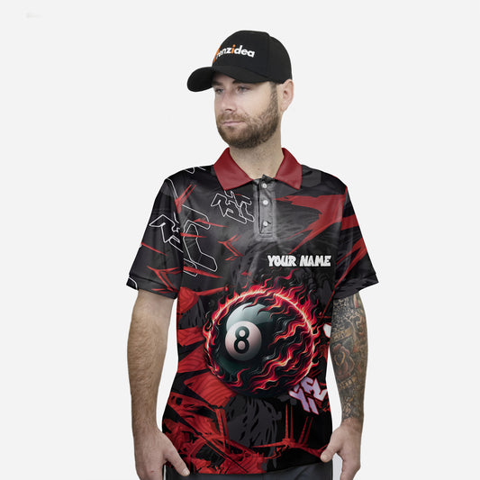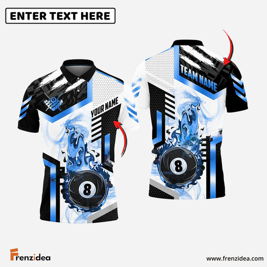 Frenzidea Billiards Ball 8 Pool Flame Personalized Name, Team Name Unisex Shirt (4 Colors)
