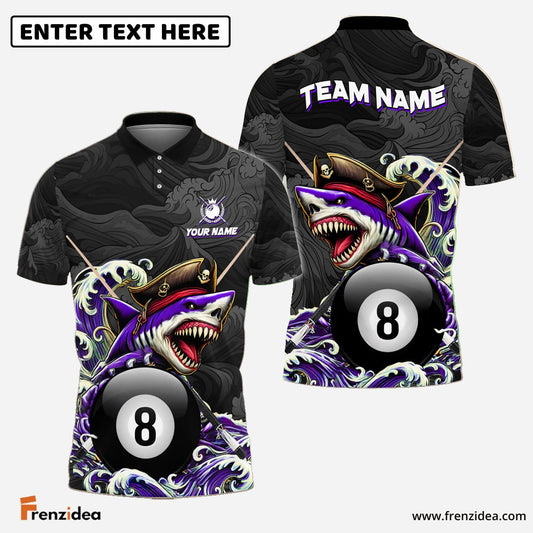Frenzidea Billiards Shark Pirate Personalized Name Shirt (6 Colors)