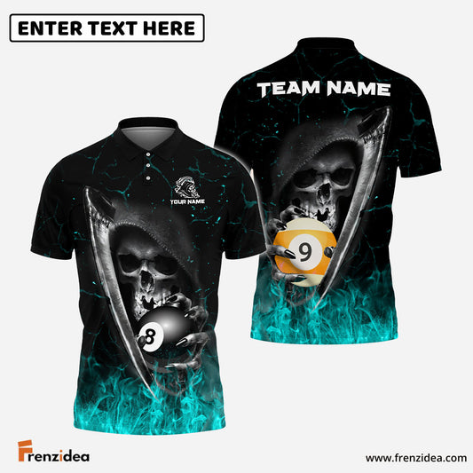 Frenzidea Billiards Skull Skeletons Personalized Name, Team Name Shirt