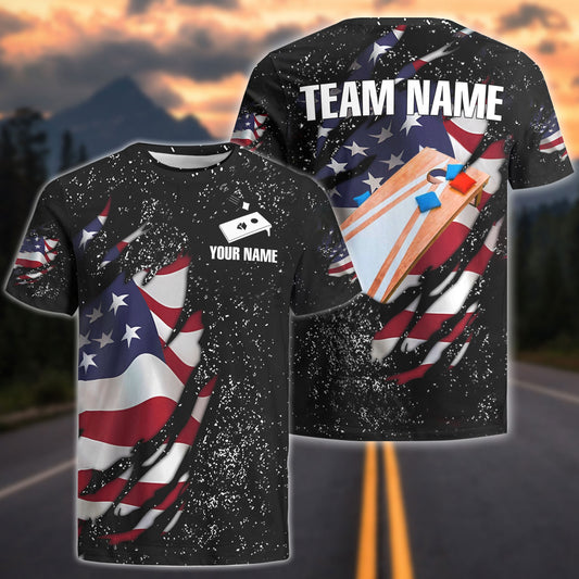 Frenzidea Cornhole Sport America Personalized Name, Team Name Shirt ( 4 Colors )