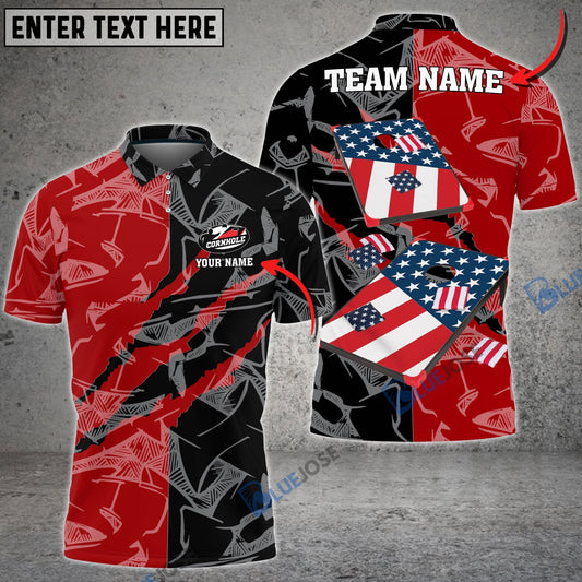 Frenzidea Cornhole American Half Grunge Personalized Name, Team Name Shirt