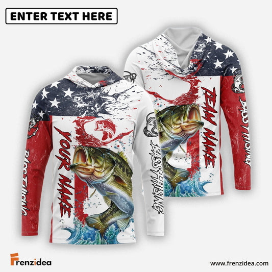 Frenzidea Bass Fishing American Flag Patriotic Custom Name 3D Shirts