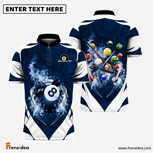 Frenzidea 8Ball & 9Ball Billiards Blue Personalized Name, Team Name Unisex Shirt
