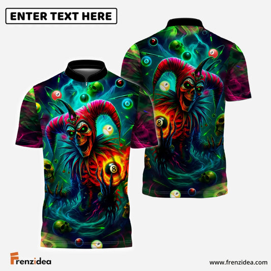 Frenzidea Evil Jester 8 Ball Billiards Custom Polo Team Shirt