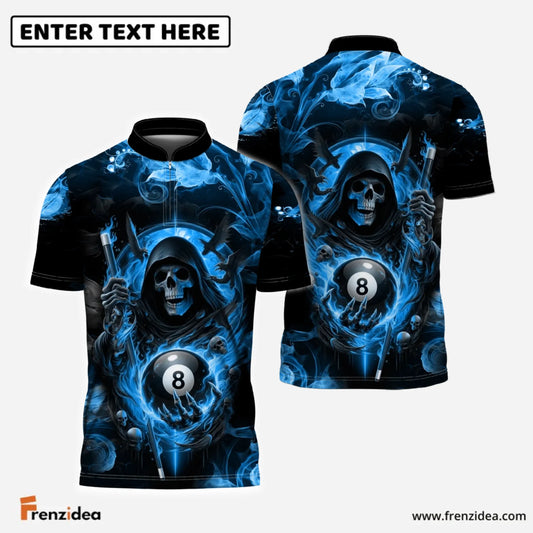 Frenzidea Dark Skull 8 Ball 9 Ball Billiards Custom Polo Team Shirt