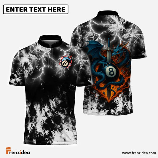 Frenzidea Billiards 8ball & 9ball Hawk Pattern Customized Name, Team Name 3D Shirts (4 Colors)