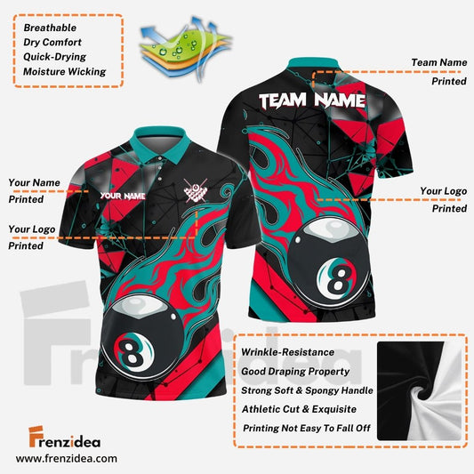Frenzidea Billiards 8 Ball Peaceful Fire Personalized Name, Team Name Shirt