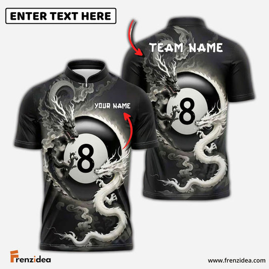 Frenzidea Billiards 8,9 Ball Black And White Dragon Couple Personalized Shirt (3 Options)