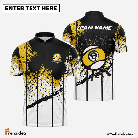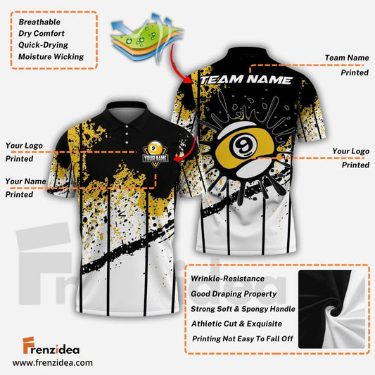 Frenzidea Billiards 9 Ball Ink Art Personalized Name, Team Name Shirt