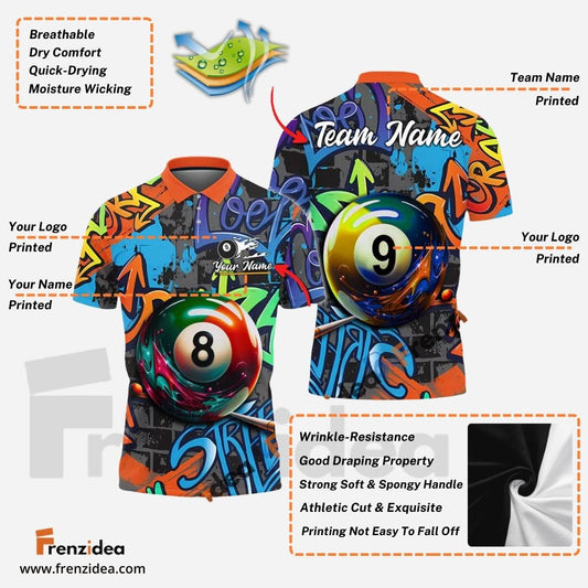 Frenzidea Billiards Ball 8 & Ball 9 Graffiti Street Personalized Name Shirt