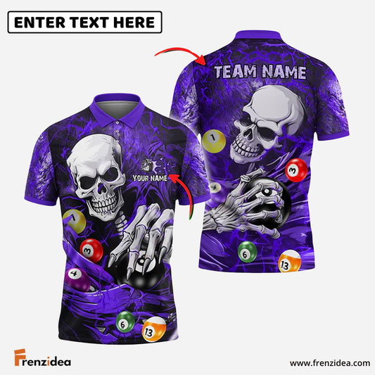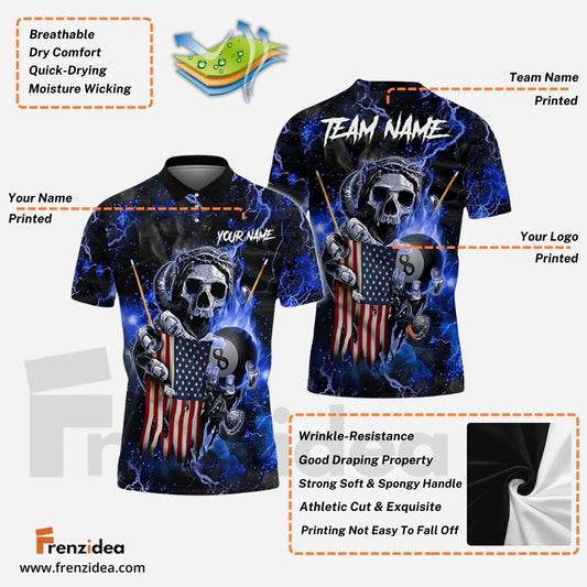 Frenzidea Billiards Ball 8 Skull Lightning Personalized Name & Team Name Shirt (4 Colors)