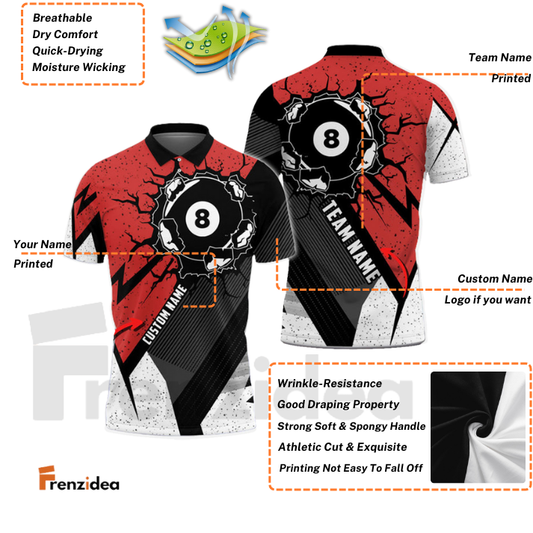 Frenzidea Billiards Ball 8 Colourful Break Personalized Name, Team Name Shirt (6 Colors)