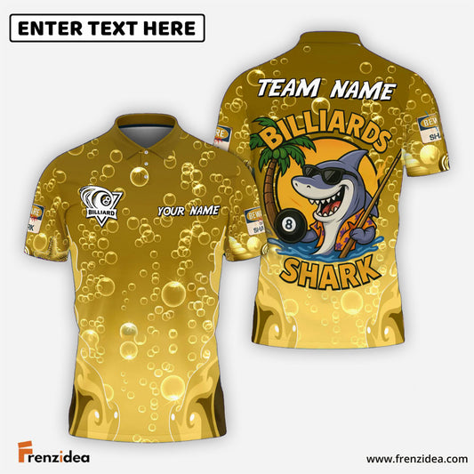 Frenzidea Billiards Ball 8 Funny Cartoon Shark, Bubble Design Personalized Name Shirt (4 Colors)