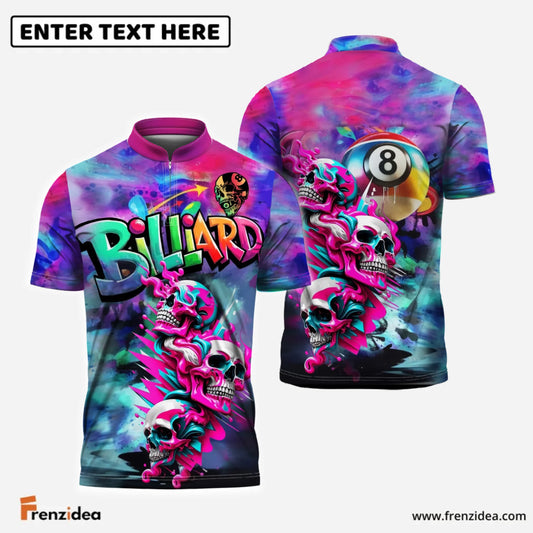 Frenzidea Billiards Skull Skeletons Personalized Name, Team Name Shirt