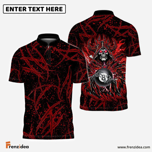 Frenzidea Skull Reaper 9 Ball Billiards Custom Polo Team Shirt
