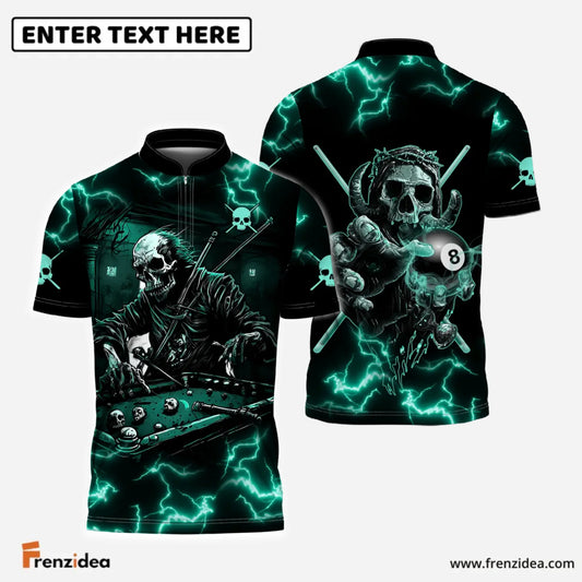 Frenzidea Billiards 8ball Electric Eight Skull Custom Name, Team Name 3D Shirt (4 Colors)