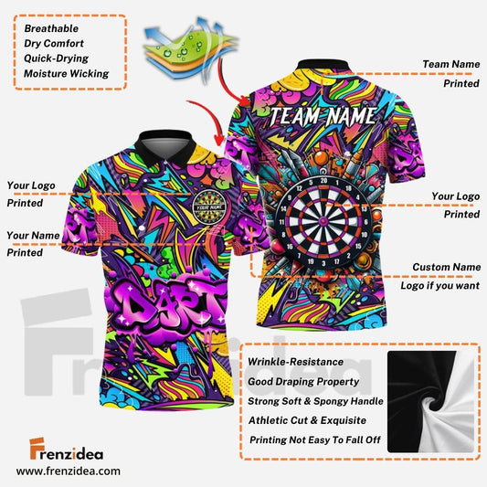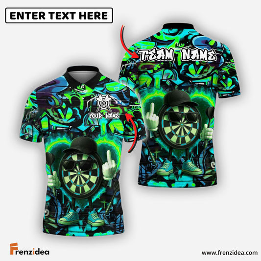 Frenzidea Darts Flaming Dartboard Attitude Graffiti Pattern Personalized Name, Team Name Shirt (4 Colors)