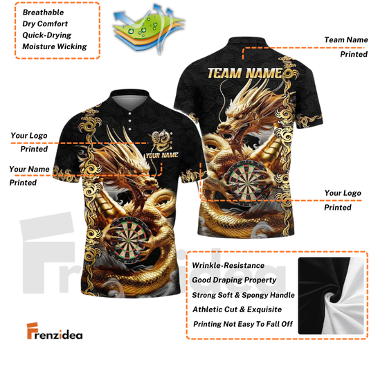 Frenzidea Darts Dragon Golden Attire Personalized Name, Team Name Shirt (4 Colors)