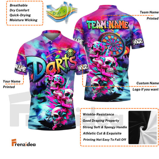 Frenzidea Darts Skull Graffiti Colorful Paint Personalized Name, Team Name 3D Shirt (4 Colors)