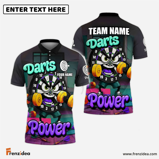 Frenzidea Darts Power Gym-Themed Cartoon Personalized Name, Team Name Shirt (4 Colors)