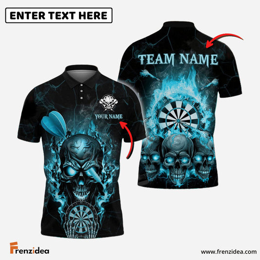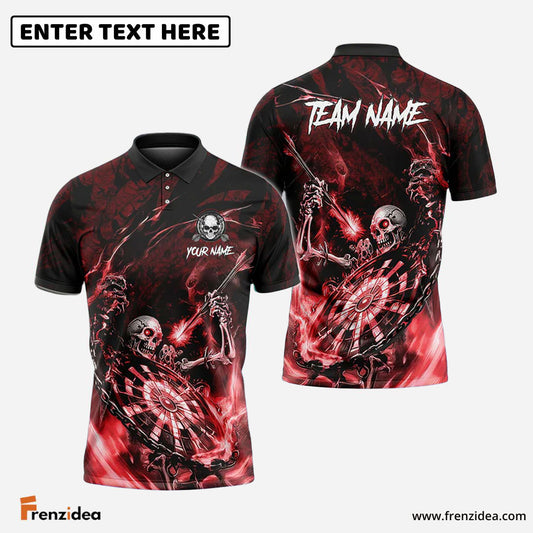 Frenzidea Darts Skull Fire Dartboard Personalized Name, Team Name 3D Shirt (4 Colors)