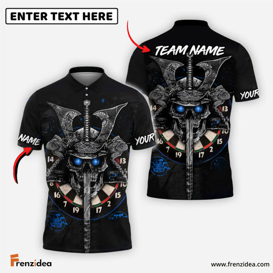 Frenzidea Darts Skull Samurai Personalized Name, Team Name Shirt (4 Colors)