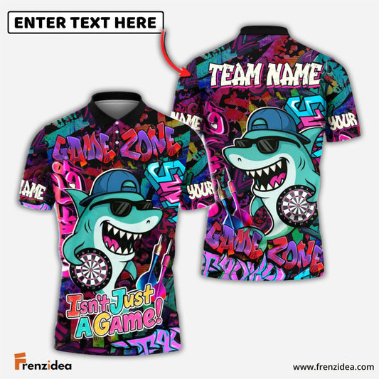 Frenzidea Darts Cool Shark Graffiti Style Multicolor Options Personalized Name Shirt (4 Colors)