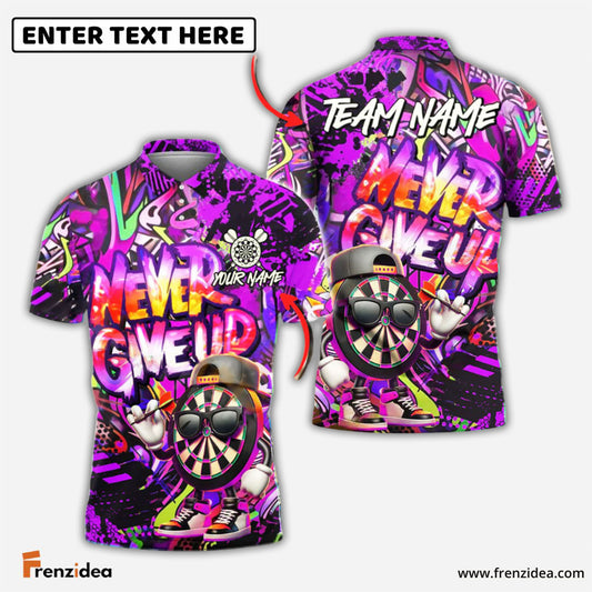 Frenzidea Darts Graffiti Funny Never Give Up Dartboard Personalized Name, Team Name Shirt (4 Colors)