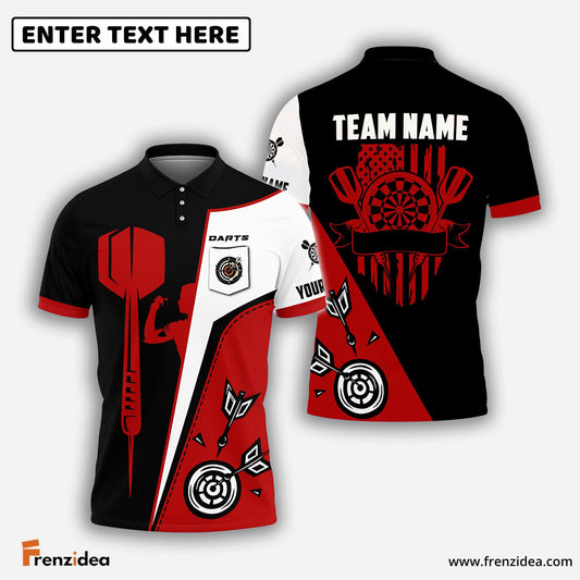 Frenzidea Dart Board US Flag Personalized Name, Team Name 3D Pocket Polo