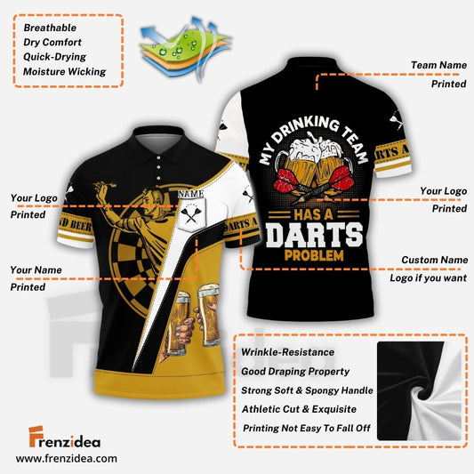 Frenzidea Drinkers Play Darts Personalized Name, Team Name 3D Pocket Polo
