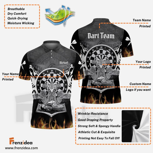 Frenzidea Breath Of Fire Darts Personalized Name, Team Name Polo Shirt (4 Colors)
