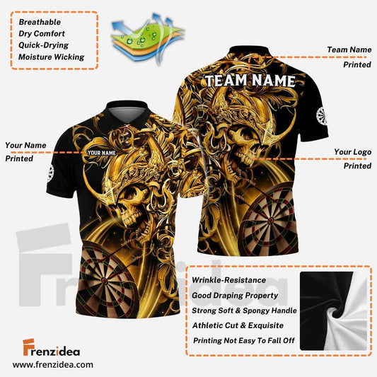 Frenzidea Darts Skull Fire Personalized Name, Team Name Shirt (5 Colors)