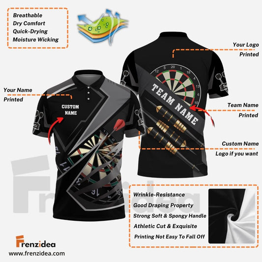 Frenzidea Darts Black And Gray Personalized Name 3D Shirt