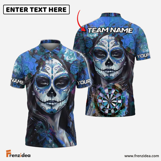 Frenzidea Darts Day of the Dead Skull Girl Personalized Name, Team Name 3D Shirt (4 Colors)