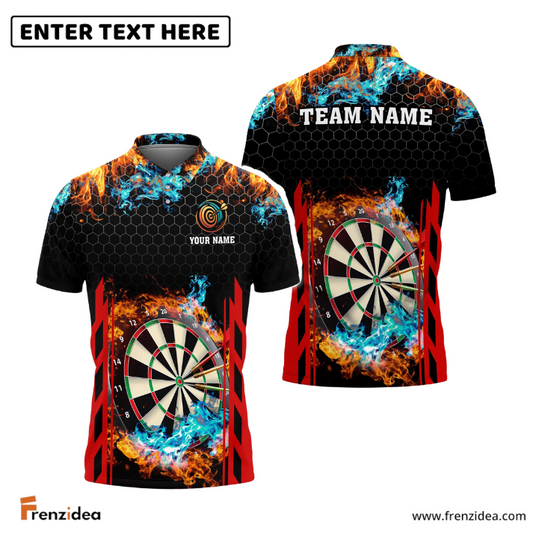 Frenzidea Red and Blur Fire Dart Board Personalized Name, Team Name 3D Shirt (6 Colors)