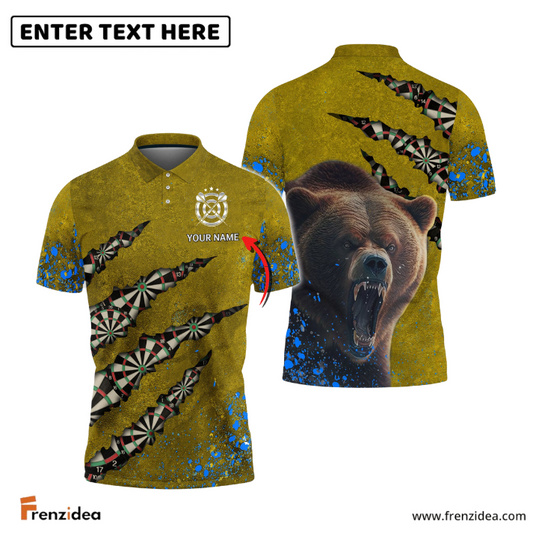 frenzidea Bear And Darts Blue and Yellow Personalized Name 3D Shirt