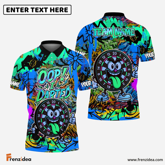 Frenzidea Darts Funny Graffiti Oop! I Darted Multicolor Options Personalized Name Shirt (4 Colors)