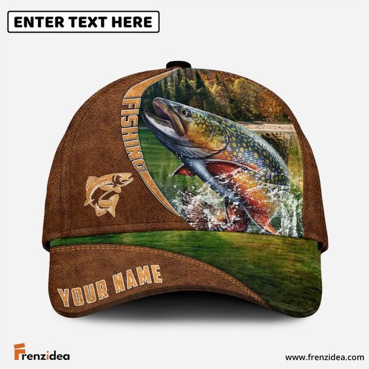 Frenzidea Personalized Trout Fishing Leather Pattern Cap