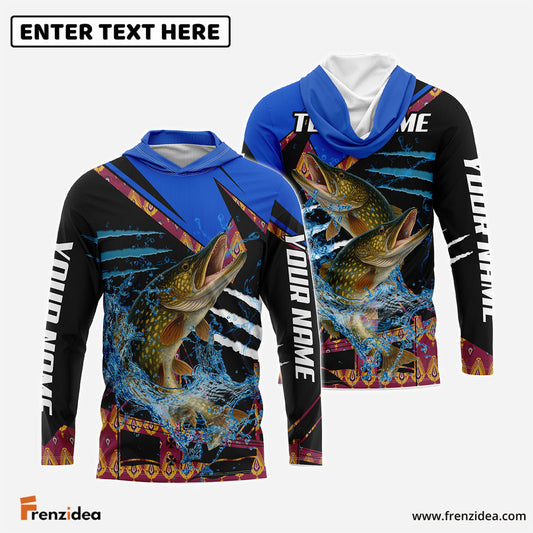 Frenzidea Pike Fishing Blue Brocade Pattern Custom Name & Team Name 3D Shirts