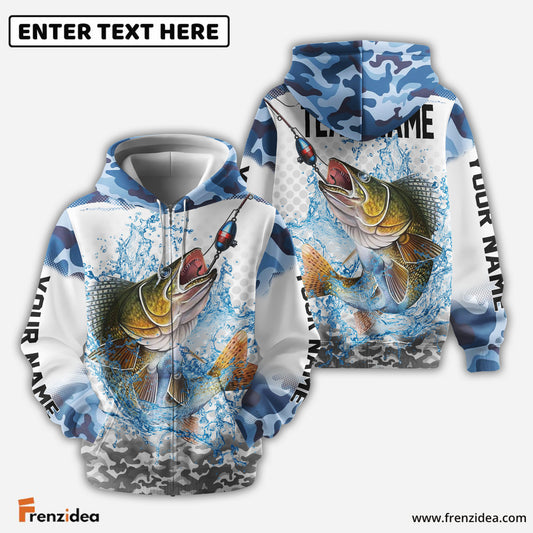 Frenzidea Walleye Fishing Blue Sea Custom Name & Team Name 3D Shirts