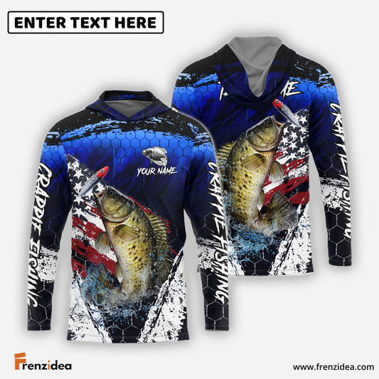 Frenzidea Crappie Fishing American Flag Seawave Custom Name & Team Name 3D Shirts